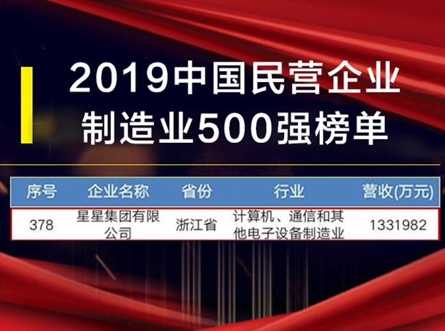 8月22日,全國工商聯(lián)在青海省西寧市發(fā)布2019中國民營企業(yè)制造業(yè)500強榜單,星星集團榜上有名。