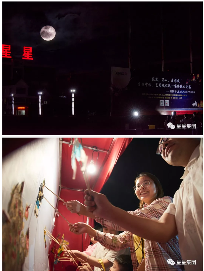為了積極落實前階段省委宣傳部王四清部長調研星星時提出的關于文化分眾供給的指示精神,星星第十七屆文化藝術節結合公司當前實際,借中秋這一中國人珍視的傳統節日,在園區廣場為廣大員工送上了一場關乎花燈、泥人、臉譜、皮影戲的傳統文化盛宴。來自集團各單位不同層面的員工月下花燈、濟濟一堂。集團常務副總裁蔣亦標,黨委書記、副總裁陳華明、副總裁林海平、總裁助理王紹卓等幾位領導也都來到了活動現場,與廣大員工共話中秋。