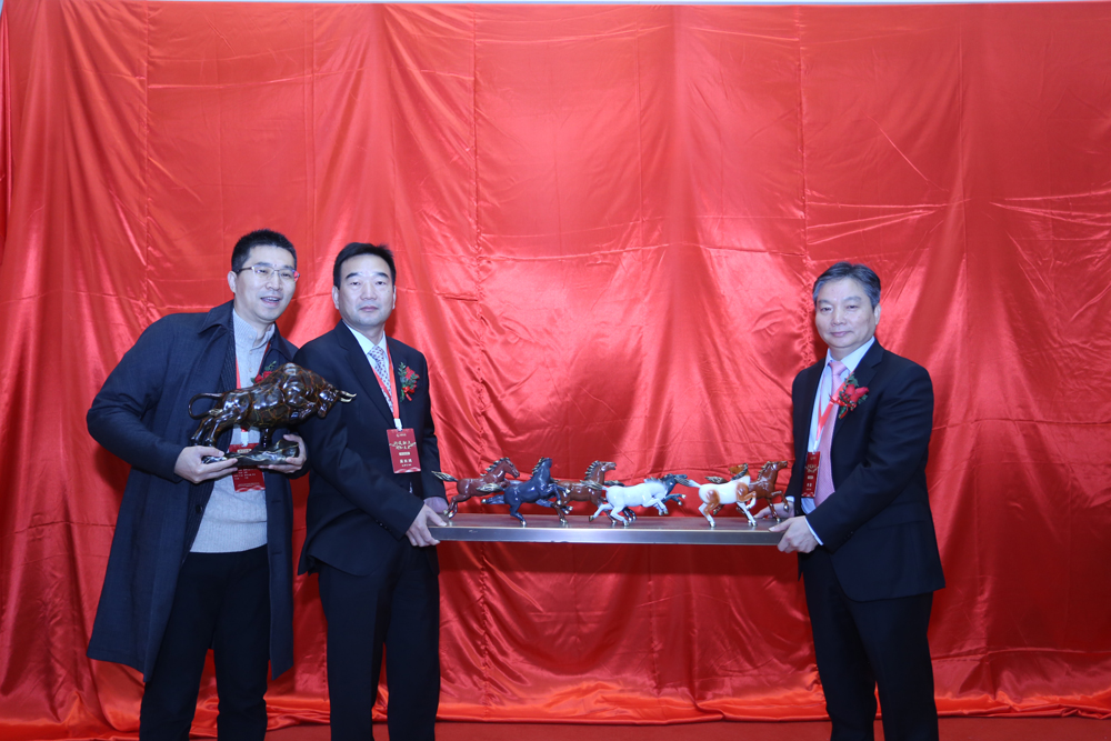 超出議程之外的是,浙大聯創周影總即興登臺發言并送來意外之喜。周影先生說:“在與水晶光電相識相知、相親相愛的六年里,每一天都非常深刻地認識到水晶光電為了中國的光電事業、新型顯示事業,心甘情愿做牛做馬。”于是,他贈送“春牛耕地”和“駿馬奔騰” 兩組銅雕,祝愿水晶意氣風發、一馬平川。