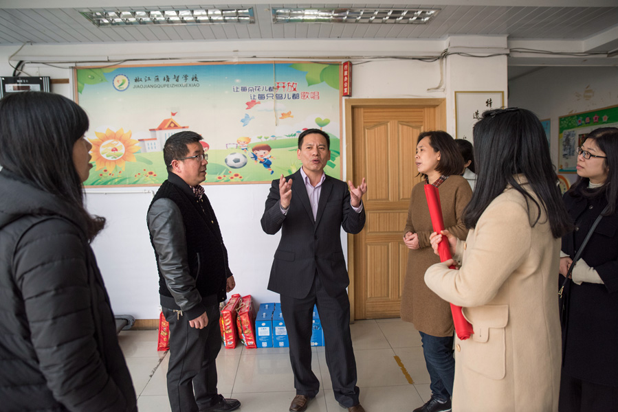 在聽完校長(zhǎng)的介紹后,陳華明書記還向校長(zhǎng)詳細(xì)詢問了本校學(xué)生的學(xué)習(xí)生活及教學(xué)的狀況,感謝他們?yōu)檫@特殊行業(yè)作出的貢獻(xiàn),因?yàn)樗麄兊哪托闹笇?dǎo)才讓這些孩子慢慢能夠生活自理。在看完孩子之后,集團(tuán)一行人又向在崗的女老師道一聲節(jié)日的問候,感謝她們辛勤的付出和默默的陪伴。